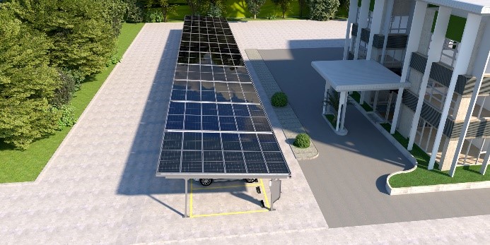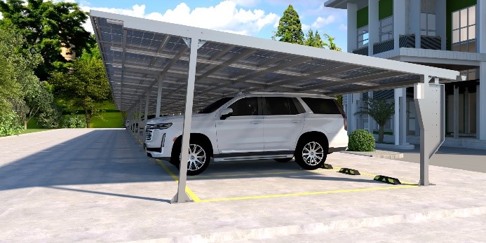 Land occupied area: 5×3= 15 m2 Roof size: L 5 x W 3 x H2.1m Distance between columns: 4.2m x 3m The carport frame is made of galvanized and powder-coated steel bars that can provide durable protection over time and weather. The structure is quickly erected with bolts. There is a ditch to collect water. LED lighting | ![]() |