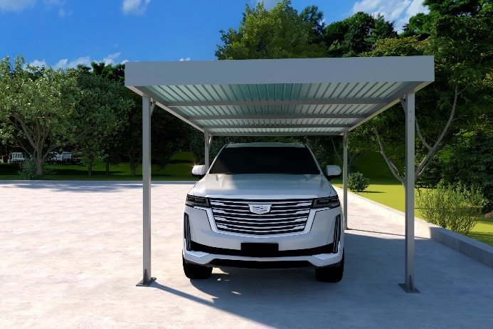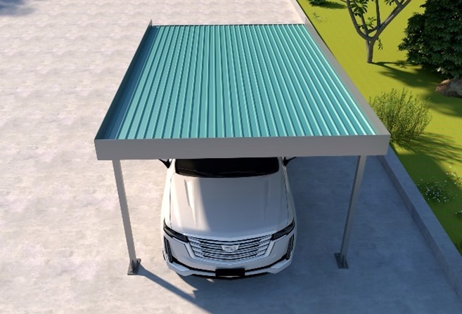 Land occupied area: 5×3= 15 m2 Roof size: L5 x W3 x H(2.1m -2.4m) Distance between columns: 4m x 3m The carport frame is made of galvanized and powder-coated steel bars that can provide durable protection over time and weather. The structure is quickly erected with bolts. There is a ditch to collect water. | ![]() |